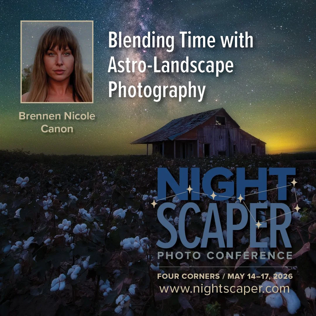 Just as importantly, Brennen will also explore the philosophy behind blending time and how combining different moments can more accurately reflect how we experience the night with our own eyes. You’ll walk away with a deeper understanding of both the technical execution and the artistic intent behind advanced astro-landscape photography.